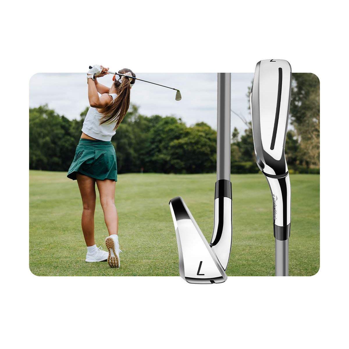 Kalea Gold irons utilize Cap Back™ Design, Thru-Slot Speed Pocket™, and Inverted Cone Technology to help players of all abilities get the ball in the air, carry it farther, and control their shots.