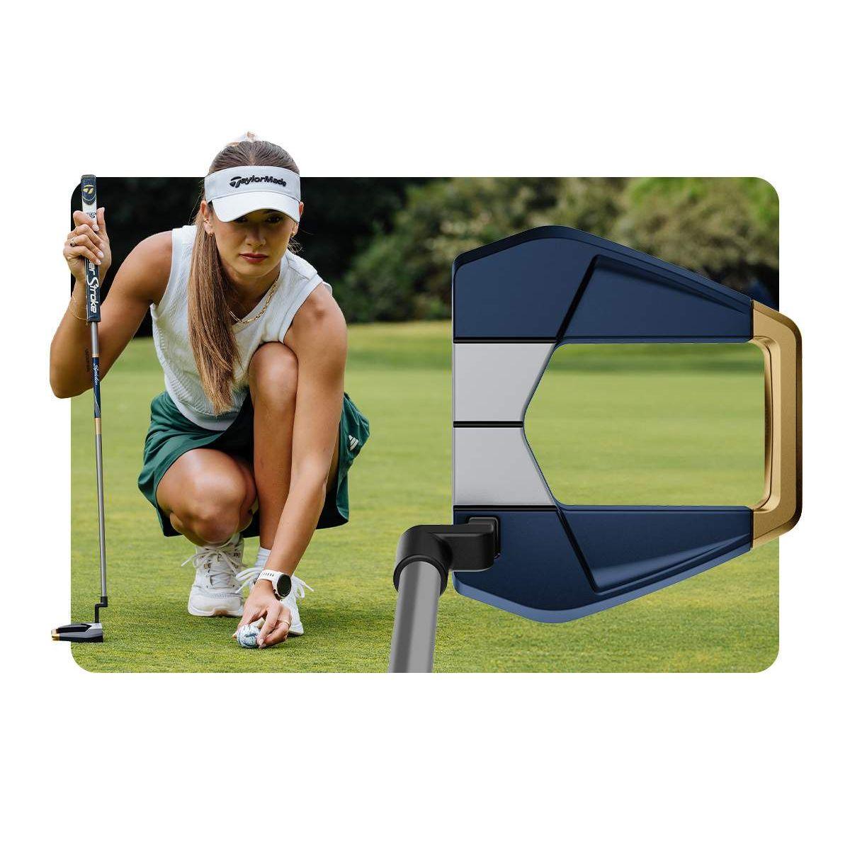 The multi-material design of the Kalea Gold Spider S putter increases MOI and stability while aiding in alignment and inspiring confidence.