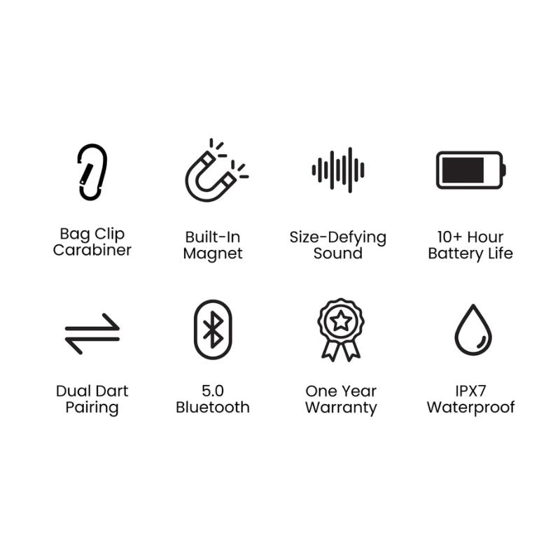 Easily attach your speaker to any type of bag or take the clip off and toss it on your cart with the built-in magnet.